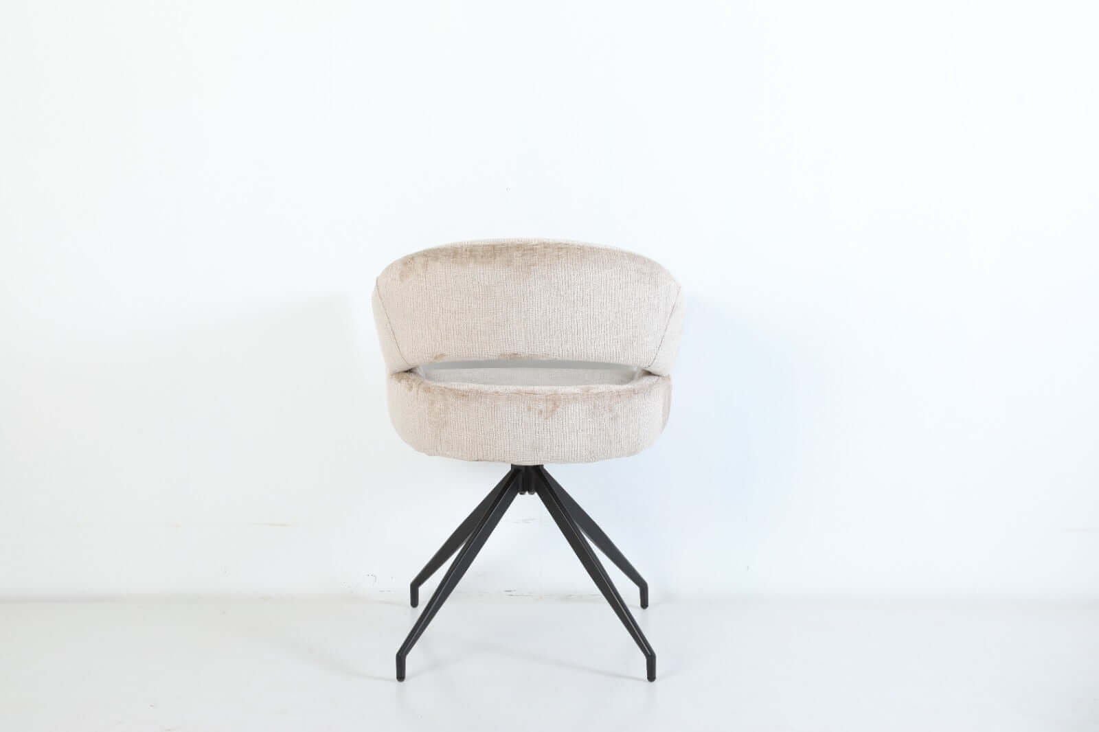 Conçue avec une coque légèrement arrondie et des accoudoirs confortables qui épousent les formes du corps, la chaise Elena invite à de longs moments à table. Son piètement en métal noir, aux lignes fines et évasées en forme de croix, allie stabilité et élégance.
